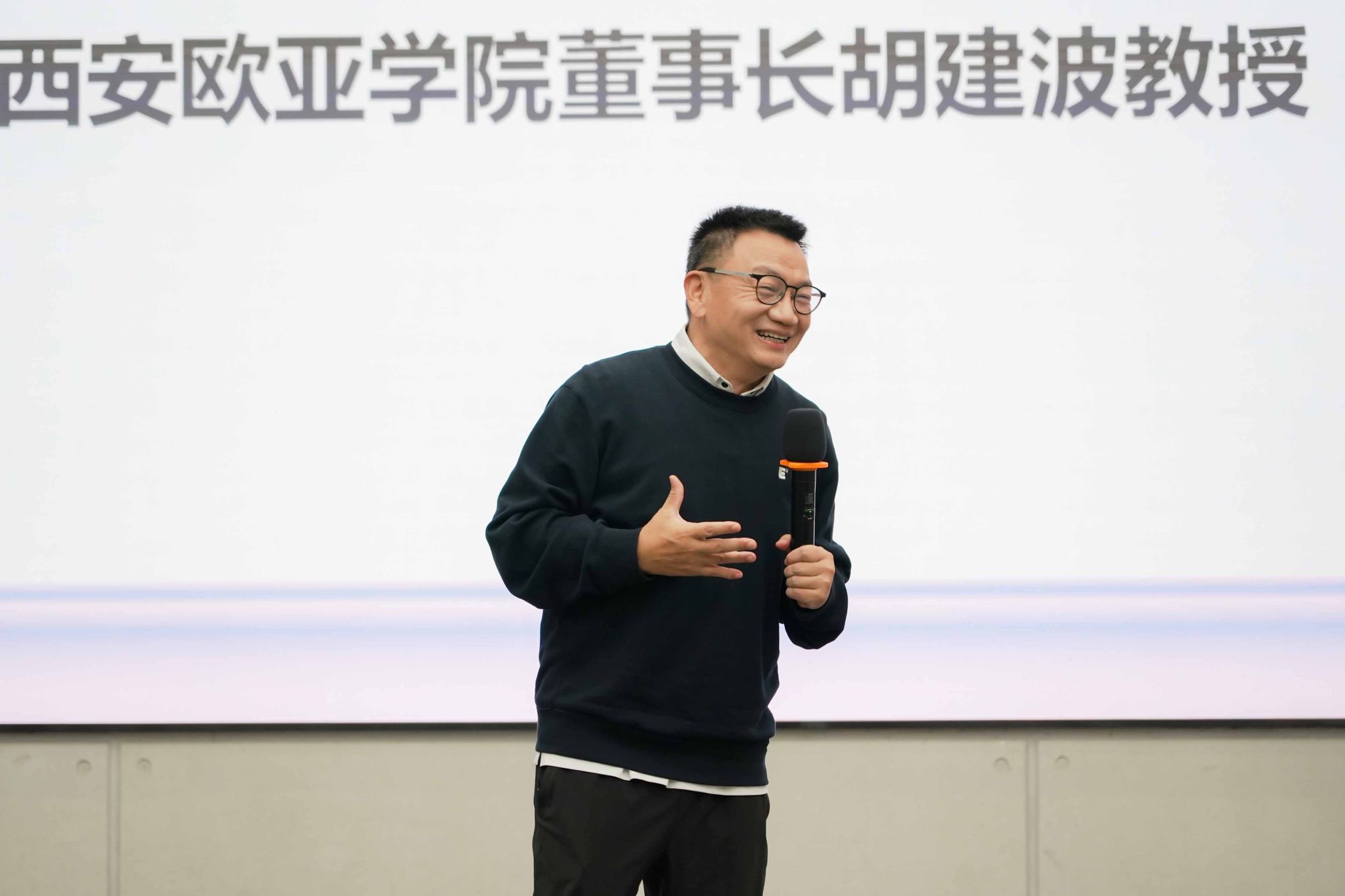 2007级国际经济与贸易专业校友、陕西纽联商业集团有限公司总经理夏伟伟以“光”为线索,深情分享了他在欧亚接收光、创业成为光、回馈母校传递光到汇聚光的动人历程。他形容欧亚不是遥望的灯塔,而是一间“光影工作室”,这里尊重个性、鼓励尝试,赋予他“和而不同”的价值观与“由此开始,随处可往”的创业勇气。