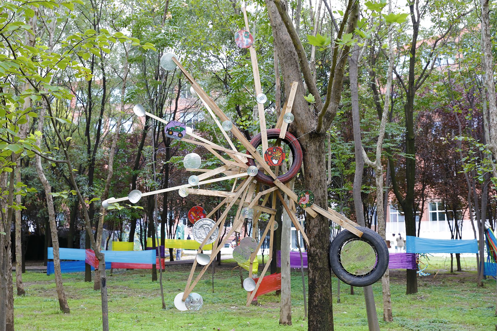 熟悉欧亚校园的人都知道,北E教学楼附近经常会冒出一些新鲜好玩的艺术装置,这里是人文教育学院师生们创作的天堂。在欧亚30周年校庆之际,一粒名为自然·童趣·共生的灵感种子,又在这片花园沃土中落地生根,灿然绽放。