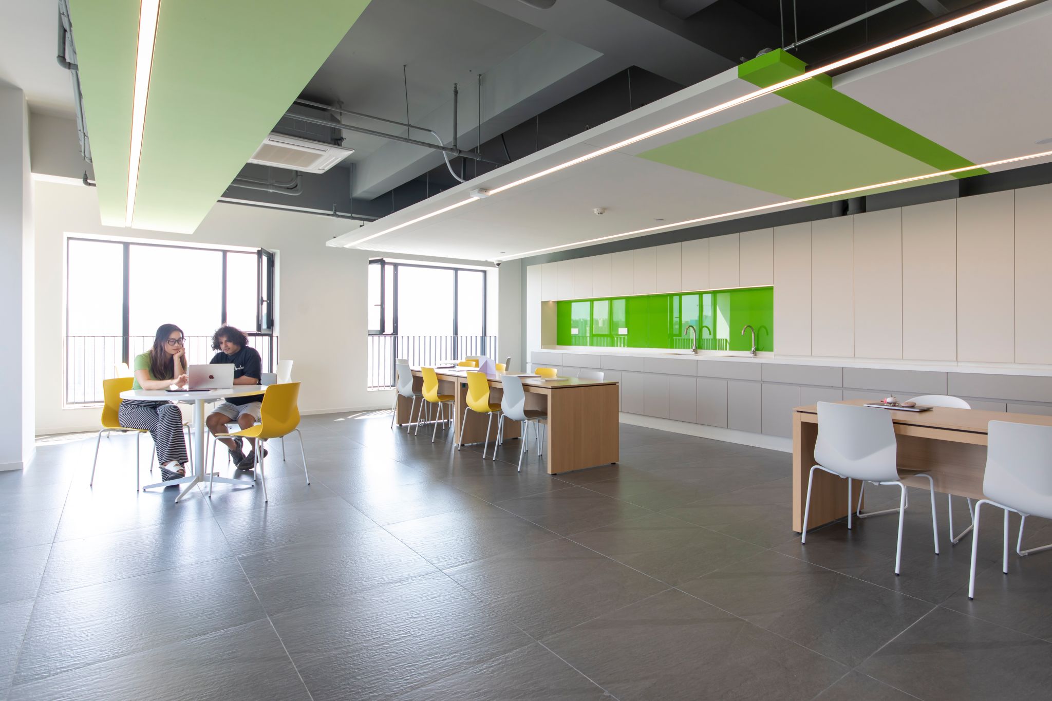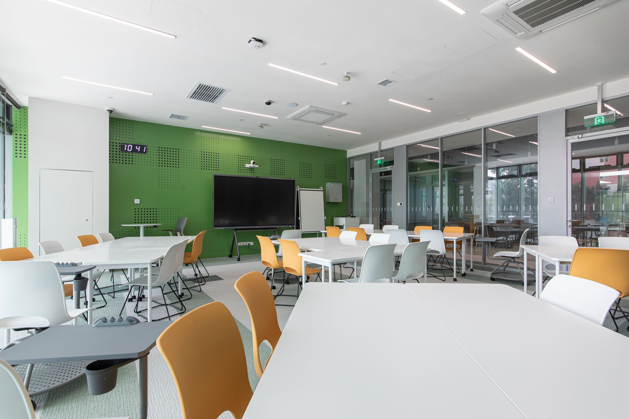 春山里的特殊价值,更深层的体现在内部科学规划与功能营造上。欧亚倡导“教育空间生活化,生活空间学习化”,学习与生活界限日益模糊,随时随地都在发生,复合型的空间更有利于学生的全面成长,DCM因此将其重构成一个立体生活学习综合体。