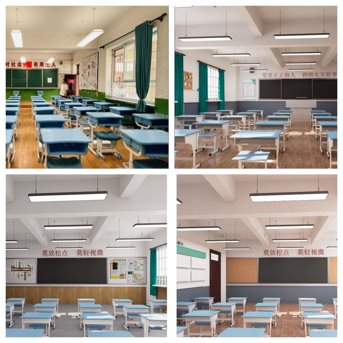 7月1日至18日,针对教室环境存在的墙皮陈旧脱落、教室展示墙面功能单一等问题,绘制设计改造方案效果图,并多次与甲方通过线上会议沟通,调整修定设计及施工方案。