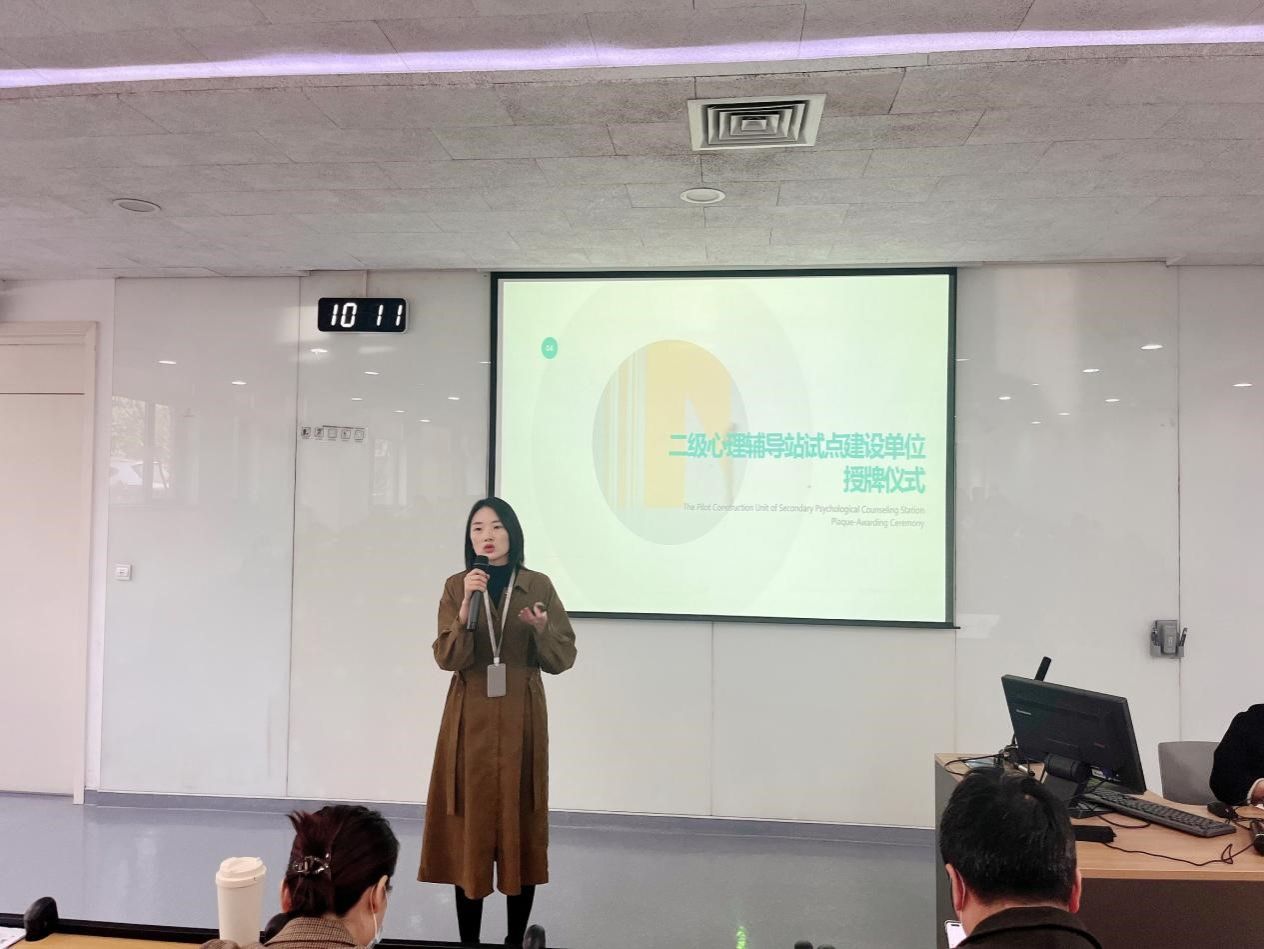 (图四)I²二级心理辅导站站长顾琳进行辅导站内涵及工作介绍