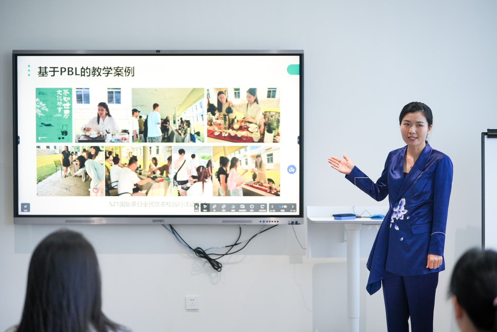赵慧娟老师首先分享了三个基于PBL教学的案例。第一个案例是“521国际茶日”的校园活动,学生团队全程策划、组织并实施了这一活动,成功吸引了大量师生参与。第二个案例是“创新茶饮新产品”的开发,学生们从茶饮的制作到定价和营销都亲力亲为,展现了他们的创新能力和市场洞察力。第三个案例则是参与学科竞赛,学生们通过参与茶艺比赛,将理论知识与实践技能相结合,完成了一个完整的PBL项目。