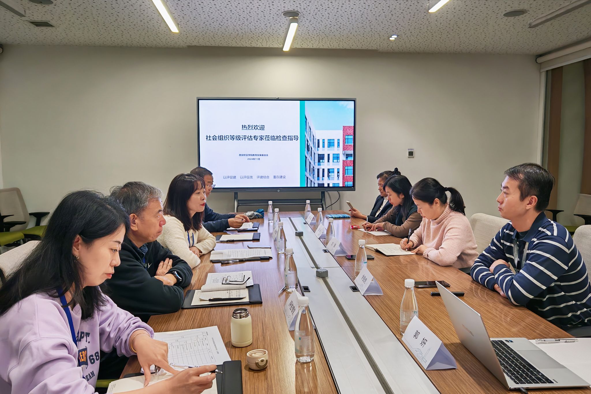 专家组由省委政法委二级巡视员魏清利,西安交通大学教育发展基金会秘书长助理毛珊,陕西泽盛会计师事务所所长程富,陕西省社会组织评估中心项目经理胡妍、专员张楚怡组成。校党委副书记、教育发展基金会理事长刘瑾,教育发展基金会副秘书长余斐虎等参加评估汇报会。