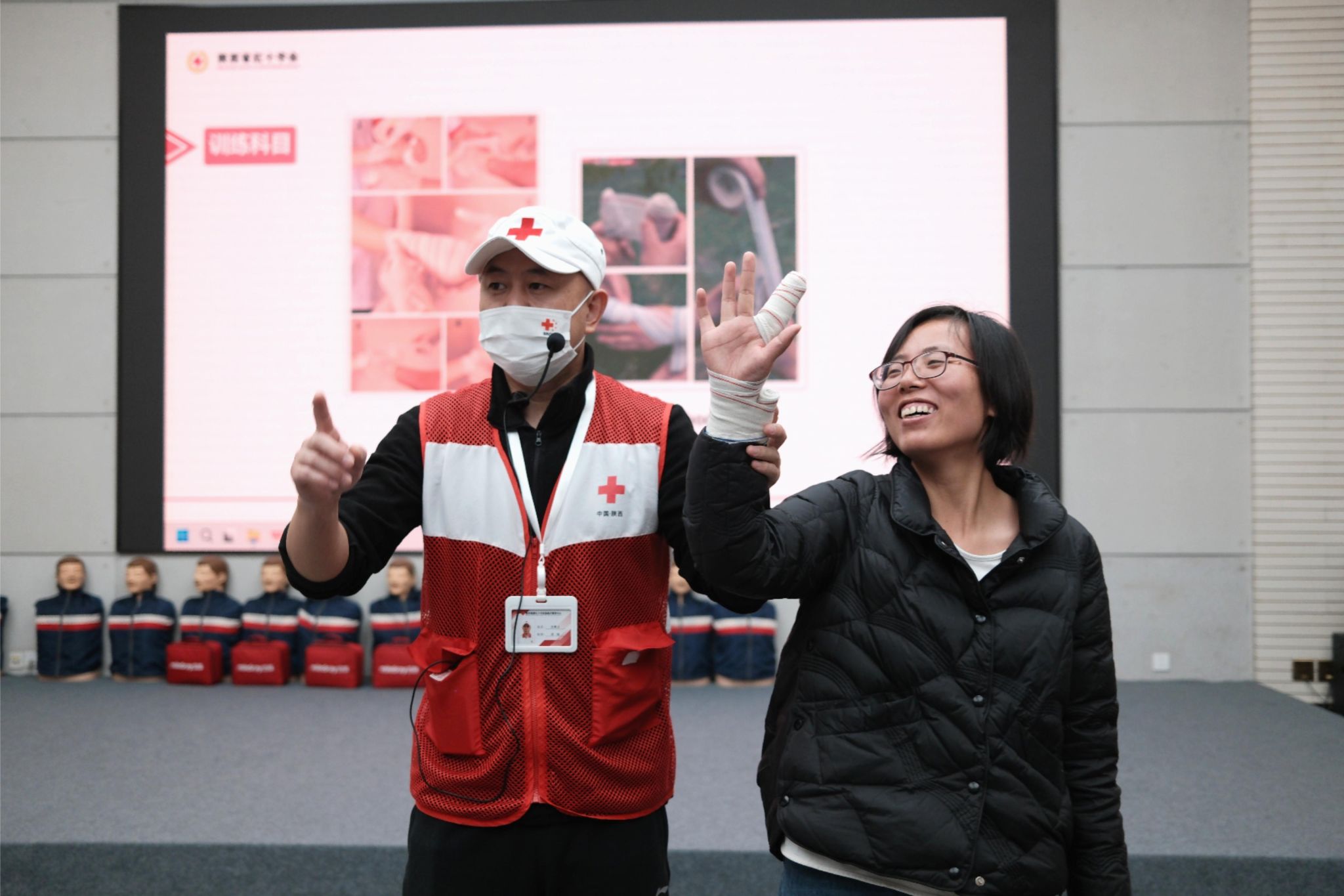本次培训内容丰富全面,涵盖红十字运动、应急救护概论、心肺复苏(AED)、创伤救护、常见急症等多个领域。精心设计的课程旨在让学员们系统掌握急救知识体系,熟练运用实用急救技能。培训结束后,学员们经过理论及实践操作考核,合格者均获得陕西省红十字会救护员证书,这标志着他们肩负起校园急救教育的重要责任。