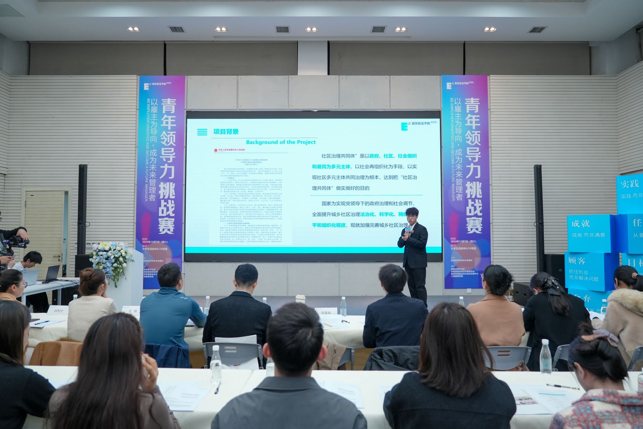 为提升学生的团队合作能力、沟通表达能力以及解决问题能力,由beat365正版唯一官网必一学生发展处主办,德鲁克青年社区、共青团beat365正版唯一官网必一委员会、工商管理学院、教育发展基金会与校友发展中心承办的第二届青年领导力挑战赛于2024年12月7日在大学生活动中心16号房成功举办。本次大赛的主题为“以雇主为导向,成为未来管理者”,大赛设三个赛道,分别为:优化学校部门工作,提升教育服务质量;服务周边社区,提高社区精细化治理;解决现实问题,创新企业发展。