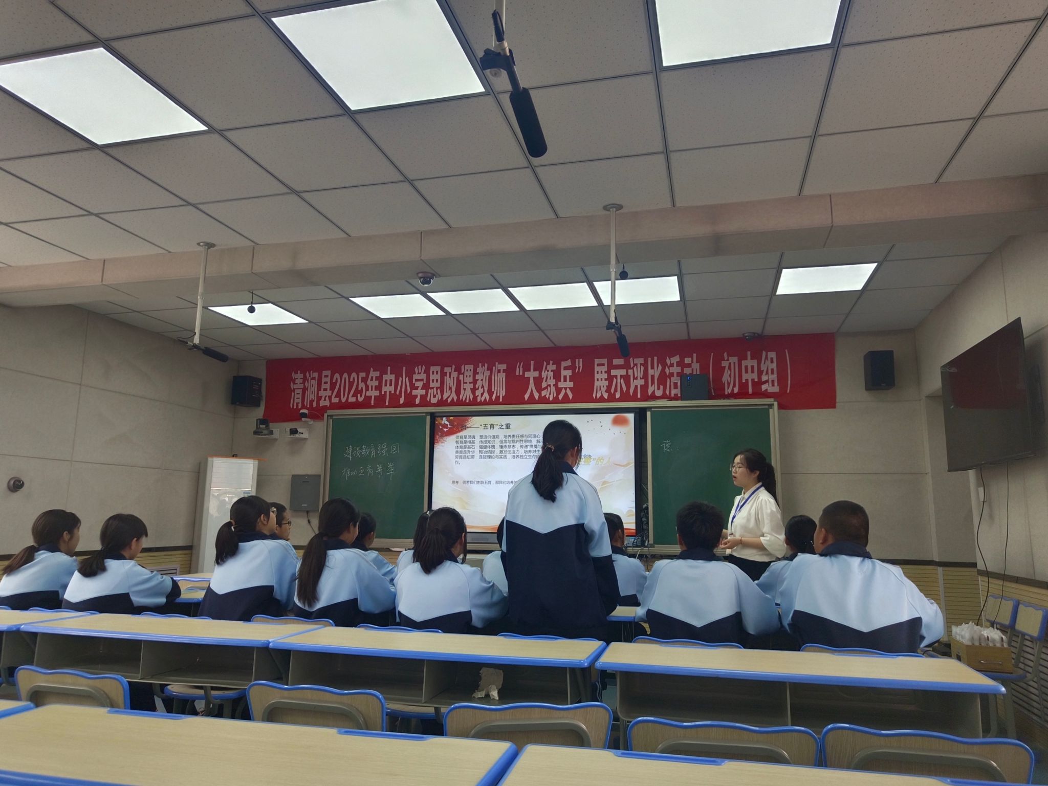 本次思政课教师“大练兵”活动分小学、初中、高中三个专场,设置“思政课程”与“课程思政”双赛道同时在清涧县昆山中学、清涧中学和清涧县第一小学展开。来自清涧县全县中小学的25名参赛教师参加了现场展示活动,展示交流内容包括单元教学设计、课堂讲授、时政述评三部分,突出“问题导向”与“学段特色”。