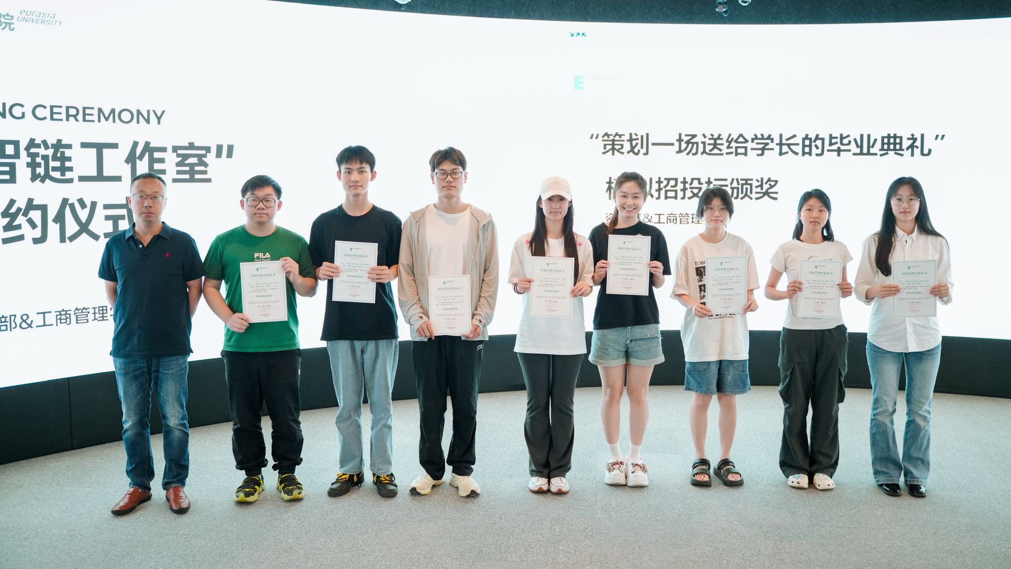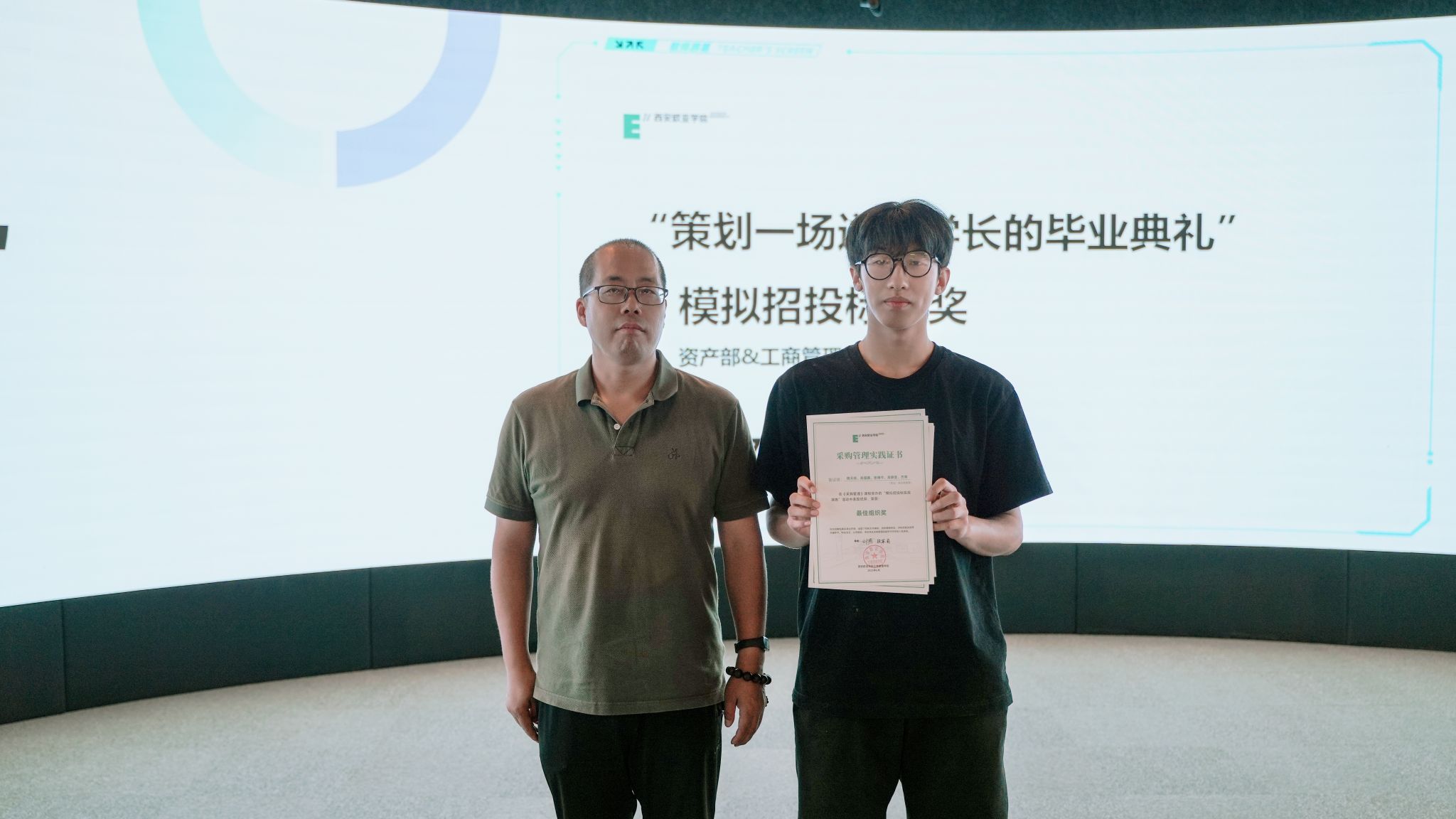 现场对统本供应链 2023 级《模拟招投标》项目进行成果验收,为荣获“最佳投标方案”“最佳组织奖”“综合表现优秀奖”“最具竞争力供应商奖”的学生团队进行表彰,以赛促学,深度检验产教融合育人成效。