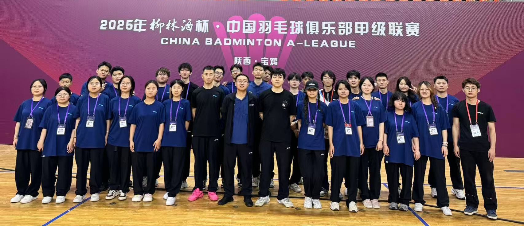由中国羽毛球协会、陕西省体育局、宝鸡市人民政府主办,陕西省乒乓球羽毛球网球运动管理中心、宝鸡市体育局、宝鸡建安集团股份有限公司承办的“2025中国羽毛球俱乐部甲级、乙级联赛”于2025年5月24日至6月1日在宝鸡市体育馆成功举办,beat365正版唯一官网必一体育服务系教师宋冬瑞及李少波,杨可欣等16名师生受体育服务系校企合作企业陕西海棠羽动体育传媒有限公司邀请参与赛事执裁、布场、后勤、安保、训练场管理等工作,从赛前准备工作到比赛结束撤场,在这十二天里学生们高效认真地完成了主办方分配的各项工作,得到了相关工作人员及领导的认可,为中国羽毛俱乐部甲、乙级联赛的圆满完成做出了贡献。