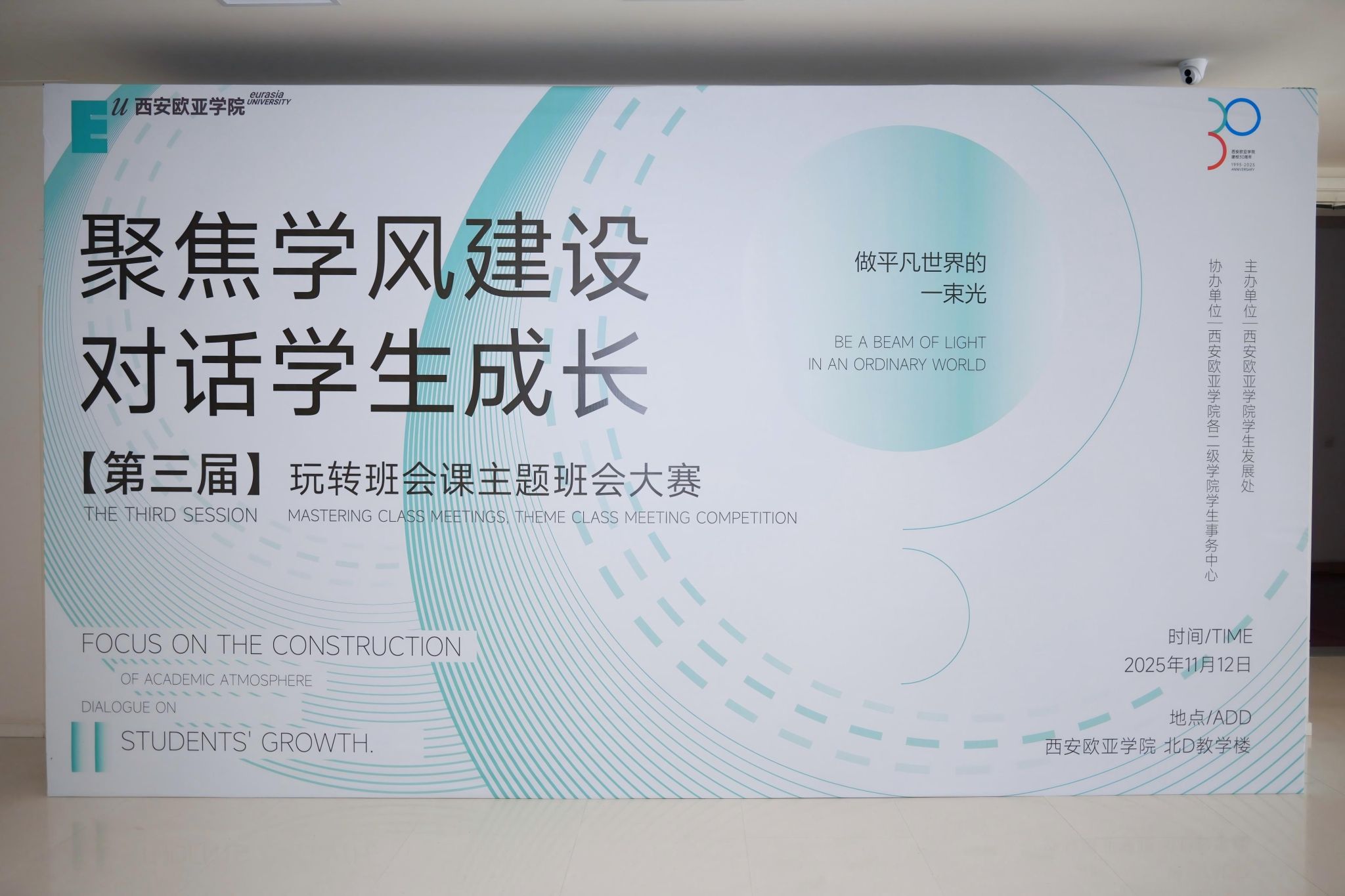 为落实学校“以企业为导向、以学生为中心”的育人理念,切实提升班会育人质量,提高辅导员业务能力水平,2025年11月12日,学校开展第三届“玩转班会课-聚焦学风建设,对话学生成长”分院专场实景主题班会设计大赛决赛。大赛旨在激发同学们对学习的内在热情、从而让主动学习、共建学风,成为同学们的自觉选择。全校共9个班级,350余人参加决赛。学生发展处处长董杨、副处长张成,质量评估中心主任张萍、马克思主义学院刘应清、学生发展处学生事务支持中心陈劲松应邀出席。