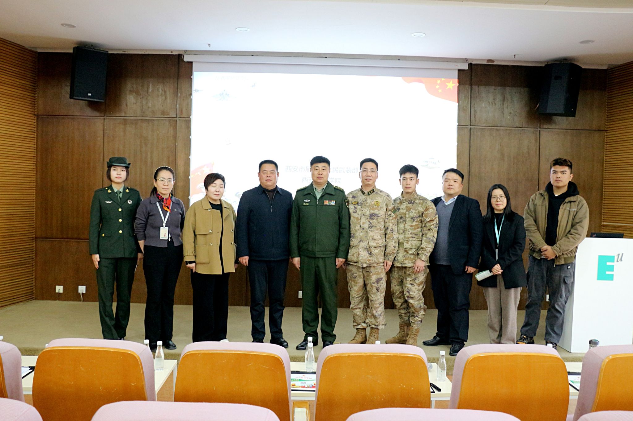 宣讲会结束后,校方领导与雁塔区人武部领导就如何进一步深化军-校合作,共同做好高素质兵员征集等工作进行了深入交流并合影留念。