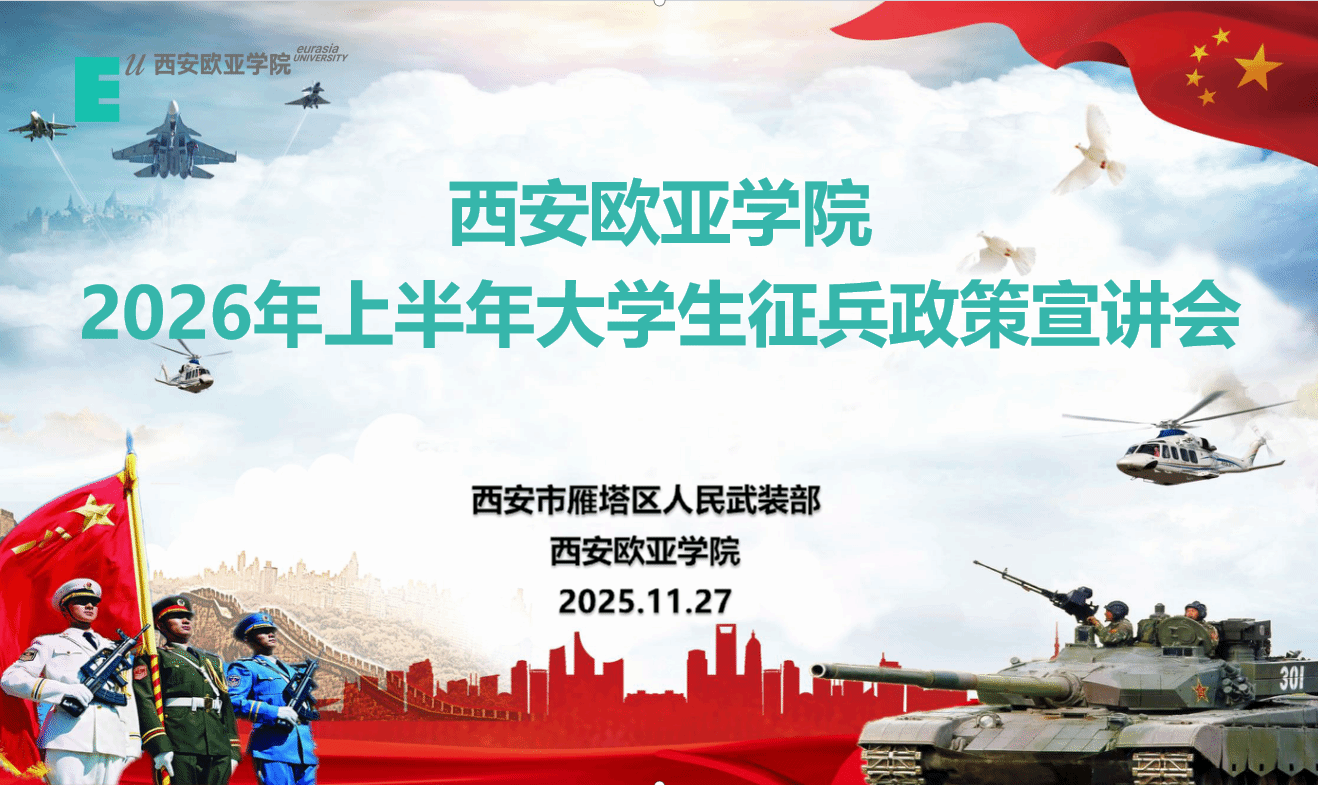 投身强军伟业,书写无悔青春,beat365吹响2026年上半年征兵工作“集结号”,征兵报名通道已正式开启。此次宣讲会的成功举办,标志着beat365新年度征兵工作已进入全面发力阶段。下一步,学校将坚决扛起为国防事业输送优质兵源的政治责任,加强顶层设计,强化部门协同,持续营造“参军光荣、入伍成才”的浓厚校园文化氛围,做实做细各项服务保障工作,引导更多优秀欧亚学子携笔从戎,在强军兴军的伟大征程中书写无愧于时代、无愧于青春的壮丽篇章,为巩固强大国防、实现中华民族伟大复兴的中国梦贡献欧亚力量!