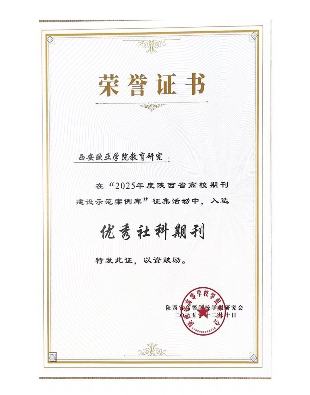 近日,陕西省高等学校学报研究会九届六次理事会议暨2025年秋季学术年会在杨凌召开,正式公布 “2025 年度陕西省高校期刊建设示范案例库入库名单”。《beat365正版唯一官网必一教育研究》成功入选“优秀社科期刊”案例,其核心栏目“民办教育研究”同步获评“社科期刊特色栏目”。