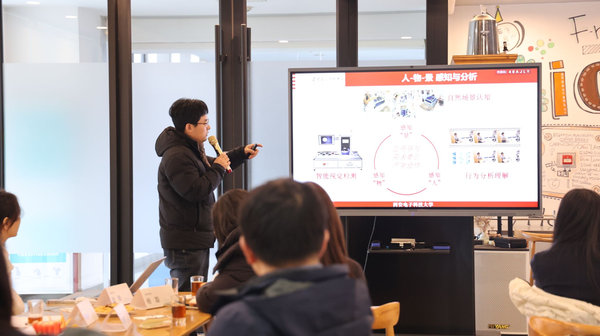 西安电子科技大学张亮教授介绍了团队在层次化感知与智能交互方面的研究内容,构建了"人-物-景"感知与分析的架构,形成"三维空间表示->持续对象学习->对象关系图->时空事件理解"的数字层次化空间认知基础,展示了团队在指控智能交互、智能公共安全、智能化工业视觉传感器等方面的研究成果,有助于提升本项目在感知检测方面的技术先进性。