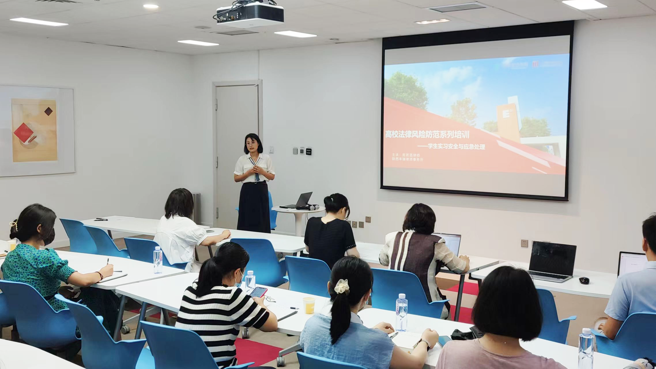 为响应教育部依法治校的要求、提升学校教职工法治意识,7月12日,学校办公室联合学校法律顾问团队组织的“高校法律风险防范系列培训”第一讲开课。本次培训聚焦 “学生实习安全与应急处理”主题,各二级学院和主要职能部门业务对接人参加。