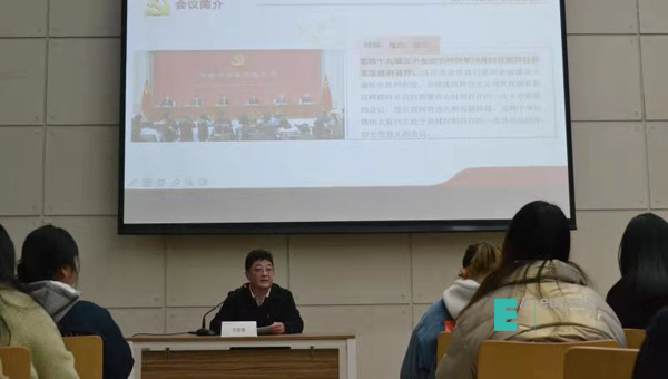 2020年12月22日中午12:45,beat365党委书记于孟晨教授以 “党的十九届五中全会精神”为主题,向第九期大学生骨干培训班学员进行宣讲。