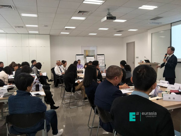 在小组讨论演练环节,陈镭老师结合欧亚学院实际工作选取了学校2018年六大重点任务,六个小组结合金字塔原理、鱼骨图分析法、思维导图等工具对学校年度目标进行层层分解,实现目标与任务有效链接,将理论知识很好的运用到管理实践中去。