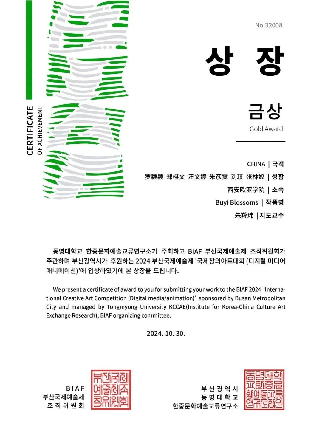 2024年郑棋文(左二)获得釜山国际艺术节金奖
