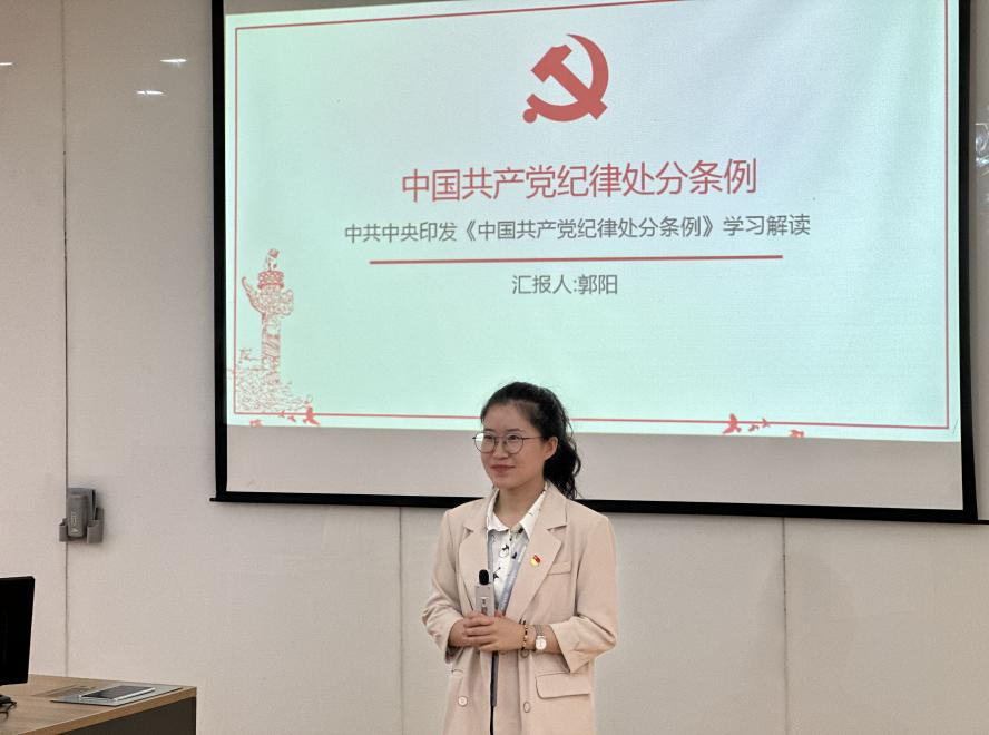 5月21日,南D-001多媒体教室内,一场由郭阳老师主讲,关于《中国共产党纪律处分条例》的党课如火如荼地展开。这次党课围绕《中国共产党纪律处分条例》内容逐条解读学习,为第四青年社区分党委全体师生党员奉上有高度、有深度、有意思的“精神食粮”。