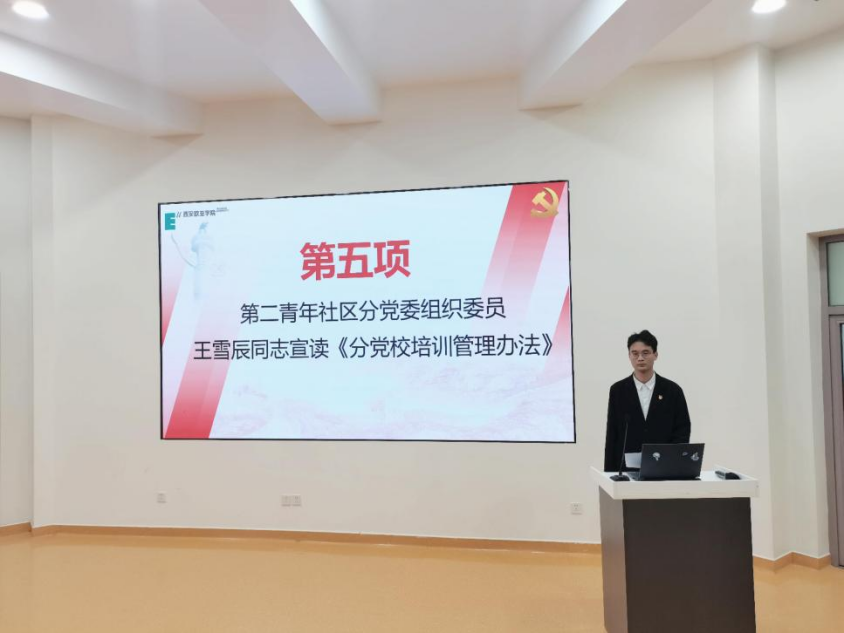 大会第五项:由第二青年社区分党委组织委员王雪辰同志宣读《分党校培训管理办法》。为进一步规范党课培训班的组织管理,保质保量地完成教育培训任务,根据《beat365正版唯一官网必一党校培训管理办法》文件精神,结合我社区工作实际,将培训工作从学习计划、线下学习、线下活动进行了统一规范。
