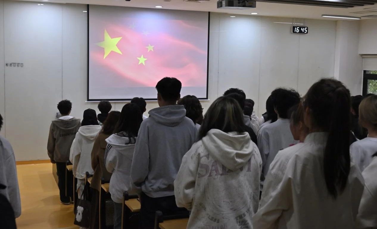 会议伊始,全体成员面向国旗肃立,奏唱国歌,伴随着雄壮的国歌歌声,团课开班仪式正式拉开序幕。
