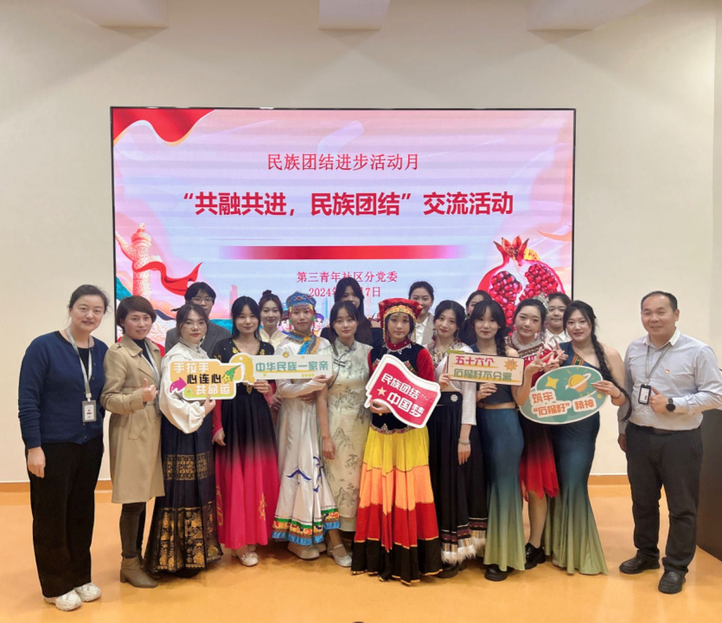 为了进一步促进各民族同学之间相互了解,增进友谊,传承和发展少数民族优秀传统文化,推动社会和谐发展,第三青年社区分党委于近日在西C-001多媒体教室开展了一场以“共融共进,民族团结”为主题的民族团结交流活动。