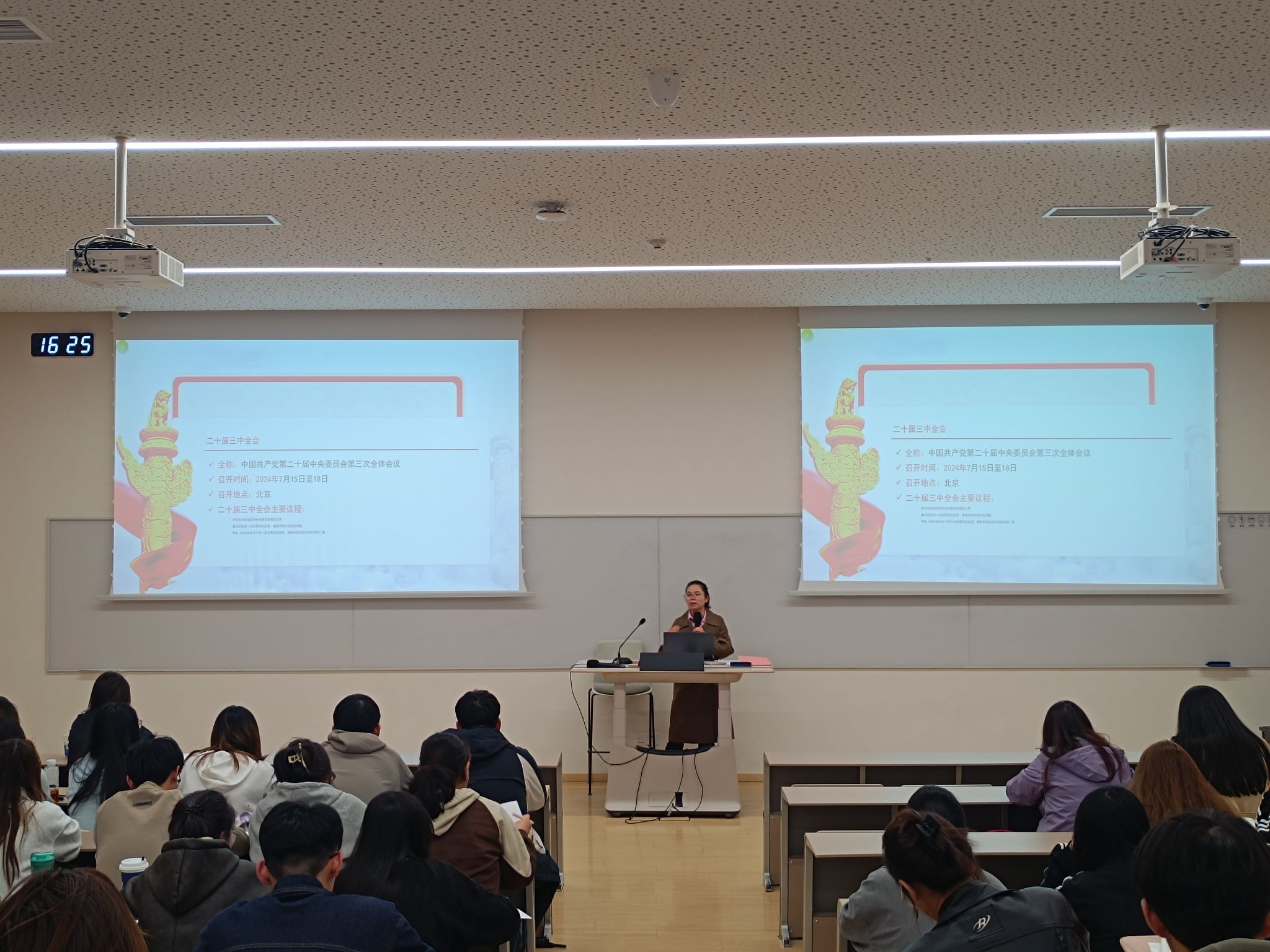 白利宁同志详细阐述了严明党纪的重要性,并指出党的二十届三中全会强调了党的领导是进一步全面深化改革、推进中国式现代化的根本保证,必须深刻领悟“两个确立”的决定性意义,增强“四个意识”、坚定“四个自信”、做到“两个维护”。同时白利宁同志告诫同学们要树立正确的权力观、政绩观、事业观,做到心中有党、心中有民、心中有责、心中有戒。