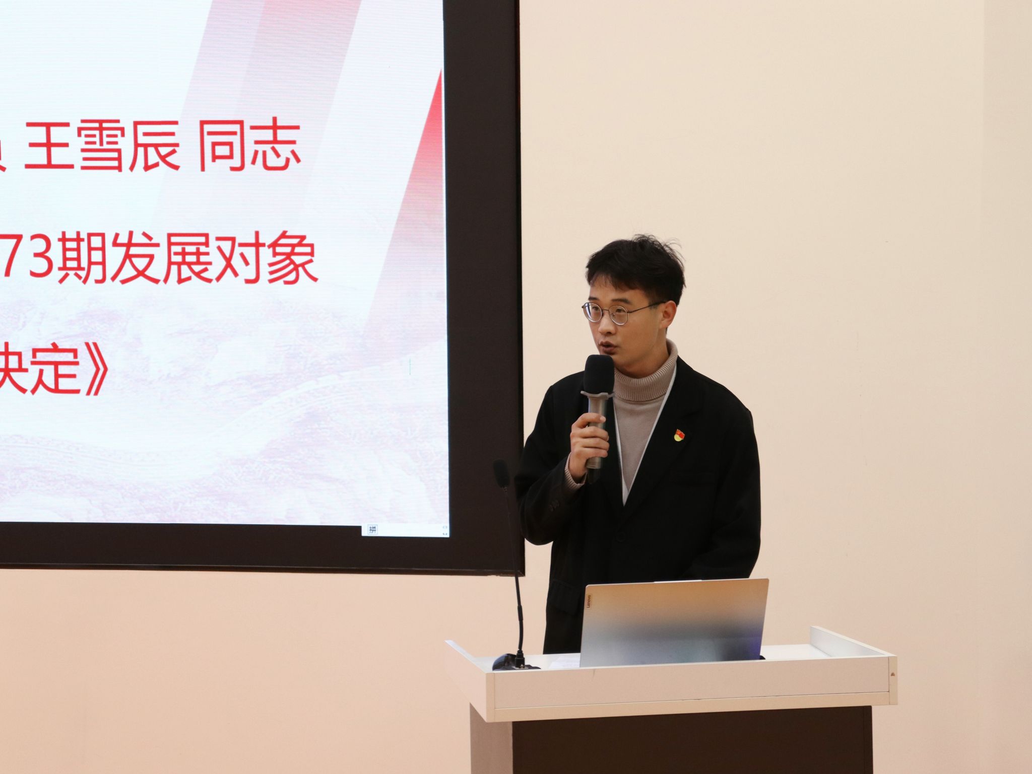 大会第三项:由第二青年社区分党委组织委员王雪辰同志宣读《第二青年社区分党校第73期发展对象培训班优秀学员表彰决定》。