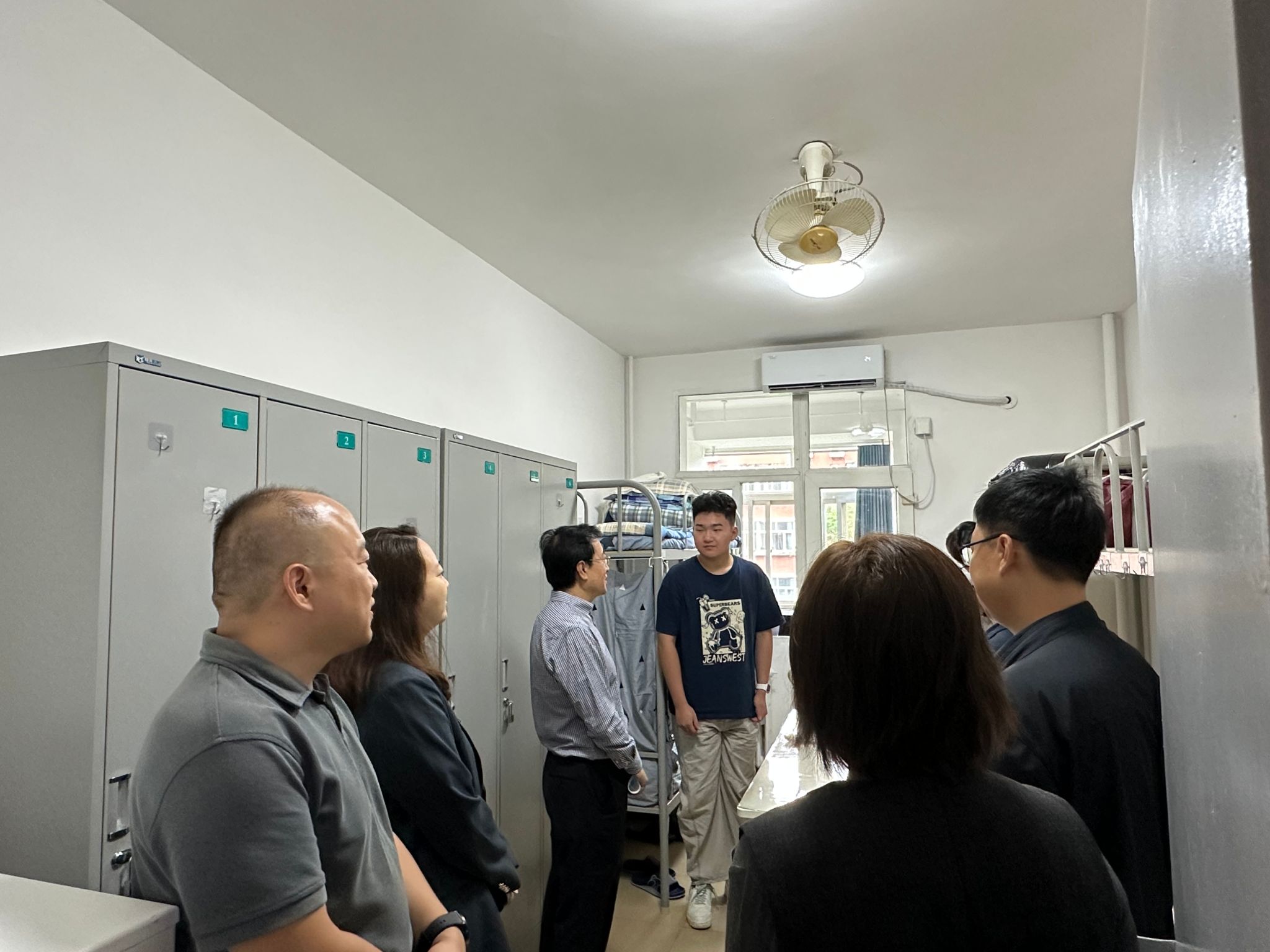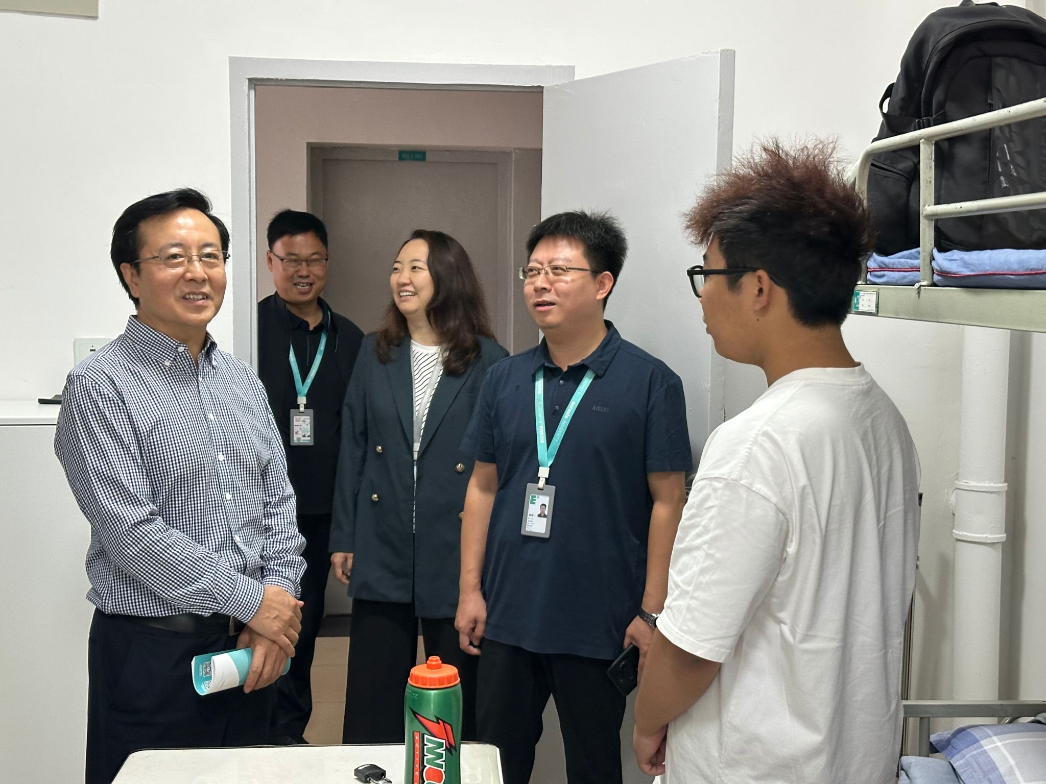 为切实了解2025级新生入学后的适应情况,传递学校对新生的关怀与问候,帮助新生更好更快地融入新集体、新环境、新生活。2025年8月29日,beat365党委书记赵国华同志及党委组织部部长赖志彬同志一行带队深入Ivy青年社区,实地走访2025级新生宿舍,与学生面对面交流,倾听学生及家长心声,并送去殷切勉励和暖心问候,学生社区主管白利宁同志陪同调研。