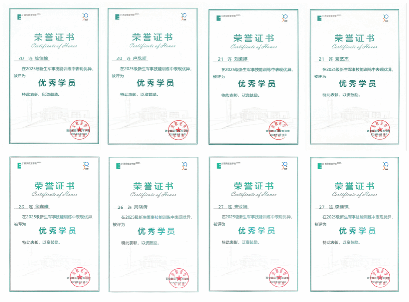 在本次军训期间,四营全体成员始终以高标准、严要求践行军人作风,将对党的忠诚融入每一次队列训练、每一场纪律考核、每一项任务挑战中。经过不懈努力,共荣获九个集体奖项,涵盖队列训练先进、内务评比、纪律作风、宣传报道二等奖、歌咏比赛三等奖等多个领域。这些奖项的获得,不仅是对全体成员军训成果的肯定,更是大家以实际行动践行“请党放心,强国有我”誓言的生动体现——从烈日下挺拔的军姿到深夜里整齐的内务,从嘹亮的红色歌曲合唱到紧急集合时的迅速有序,每一个细节都彰显着四营人传承红色基因、勇担时代使命的决心。