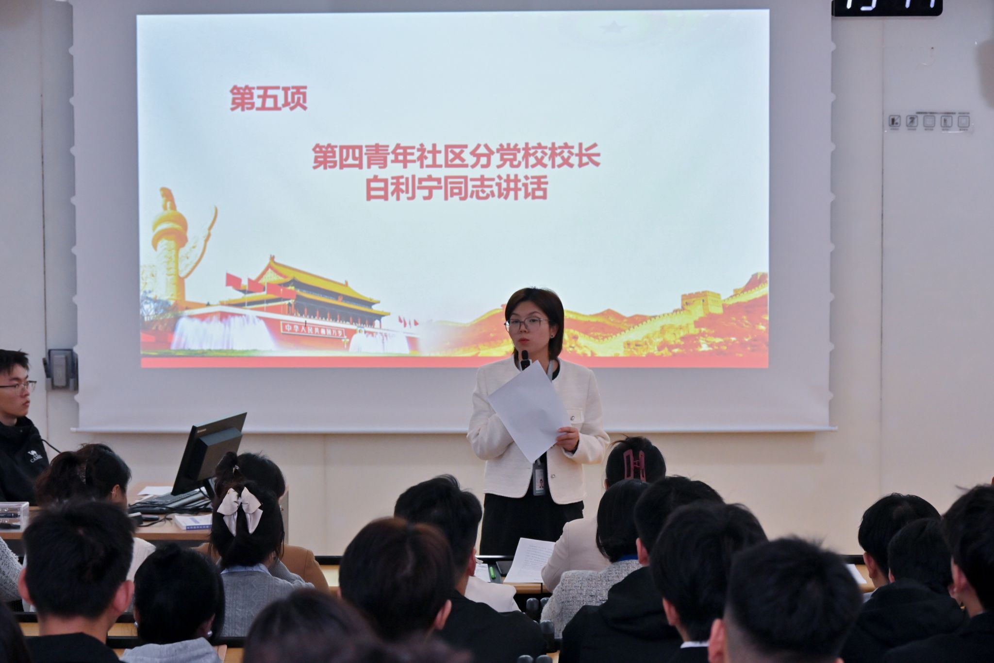 2025年11月4日,beat365正版唯一官网必一第四青年社区分党委在南D-001教室隆重举行2025年下半年入党积极分子培训班开班典礼。分党委书记白利宁、副书记黎舒婷、各党支部书记及本期94名入党积极分子参加典礼。
