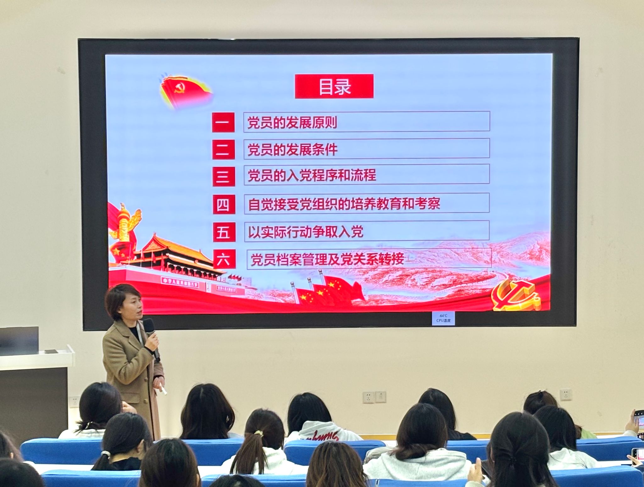 随后,张爱荣老师以严谨的逻辑和清晰的条理,为在场学员系统梳理了党员发展的全流程。讲解重点围绕发展过程中的“五种身份”——从入党申请人到入党积极分子,再到发展对象、预备党员,直至最终成为一名正式党员——进行了层层递进的深度解读。对每一种身份转化的具体条件、培养考察的重点、所需履行的手续及政治审查要求等关键节点,张老师都结合实例进行了详尽说明,使复杂的程序变得清晰可循。