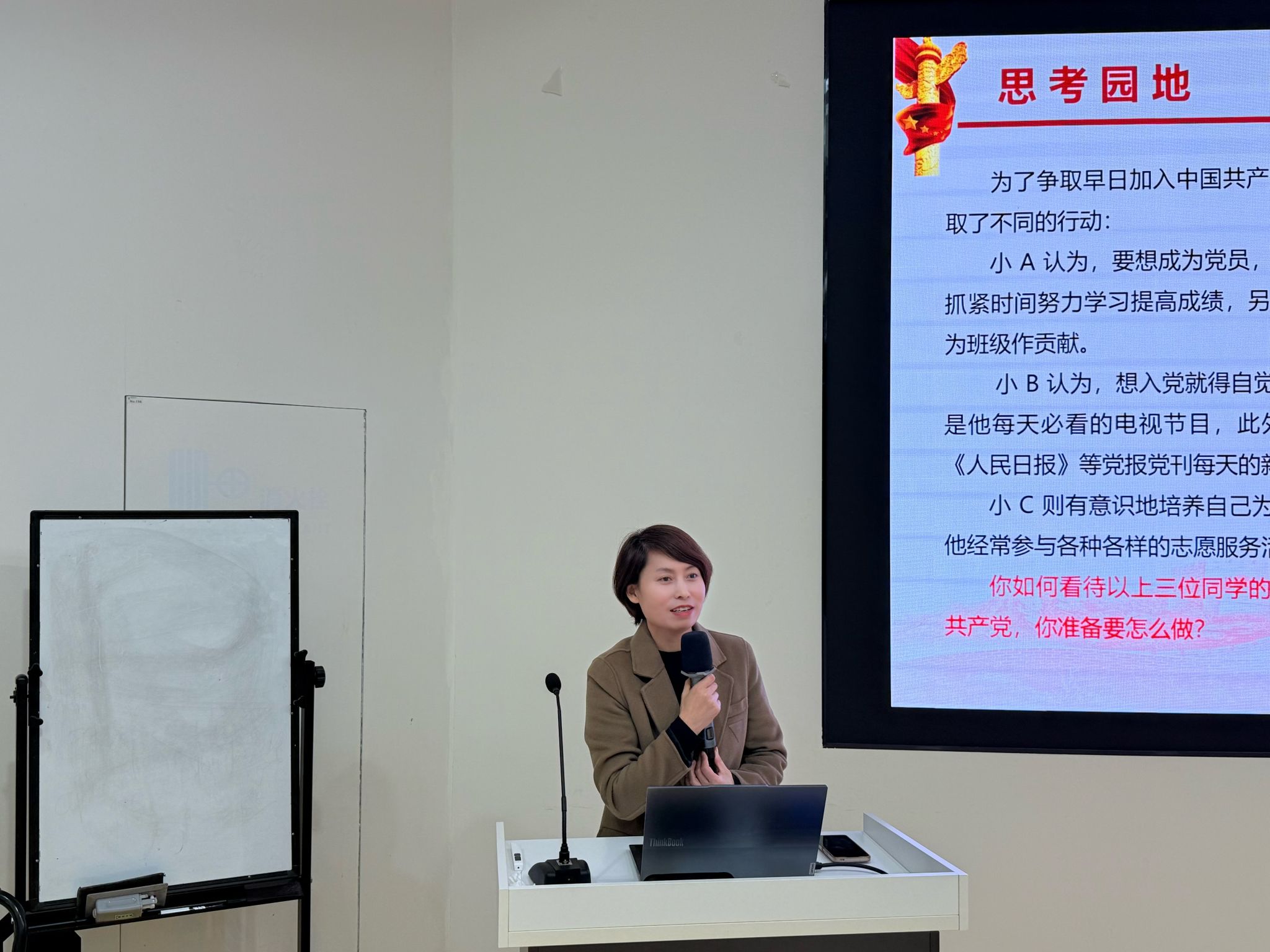 为进一步加深学生的理解,张老师现场还和学生积极互动。她在认真倾听学生发言后总结道:“同学们只有真正理解党、认同党,才能在入党道路上初心不改。”同时进一步强调,“严标准、严程序、严纪律”并非刻板约束,而是对入党初心的层层淬炼,最终确保新发展党员以“政治合格”为底色、“素质过硬”为支撑,成为党组织中能担当的先锋力量。