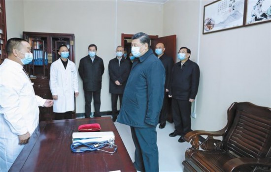 4月20日至23日,中共中央总书记、国家主席、中央军委主席习近平在陕西考察。这是4月21日,习近平在安康市平利县老县镇卫生院,了解基层卫生防疫、医疗保障工作。(新华社记者 鞠鹏摄)