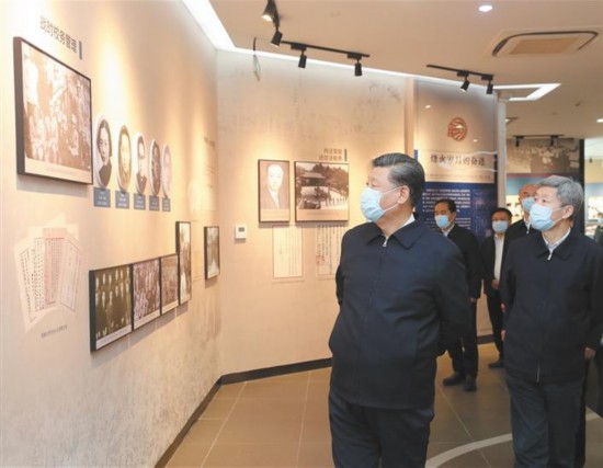 4月20日至23日,中共中央总书记、国家主席、中央军委主席习近平在陕西考察。这是4月22日,习近平在西安交通大学交大西迁博物馆参观。(新华社记者 鞠鹏摄)