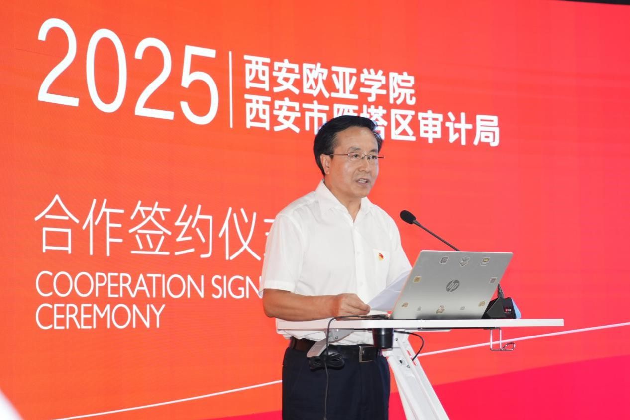 赵国华代表学校向长期支持欧亚学院发展的雁塔区委区政府致以诚挚感谢,对参会的区直机关工委及审计局一行表示热烈欢迎。他坦言,学校的成长始终与地方发展同频共振,此次共建既是 “党建引领聚合力” 的生动实践,更是 “校政协同促发展” 的务实之举。