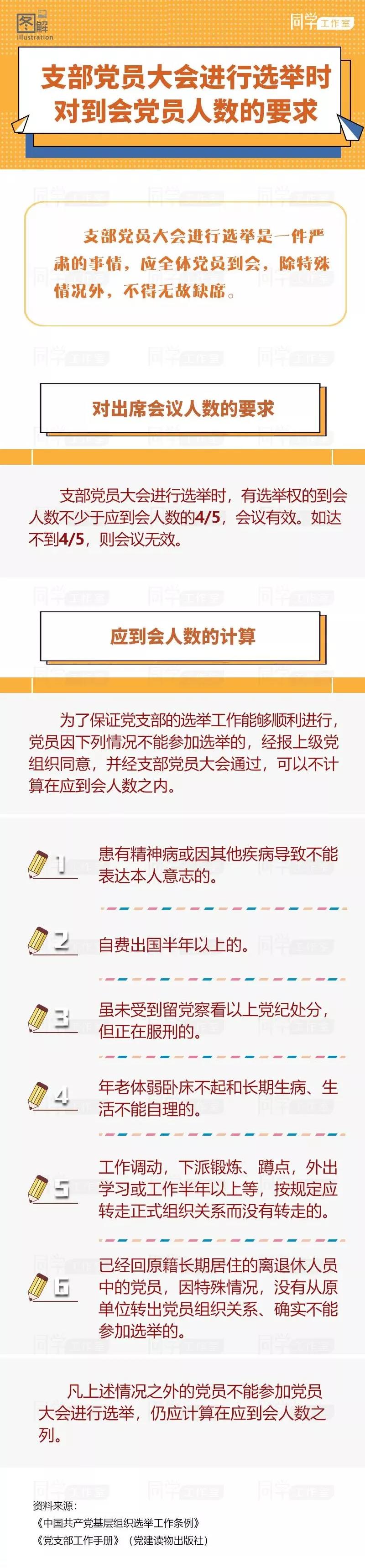 图解:支部党员大会进行选举时对到会党员人数的要求
