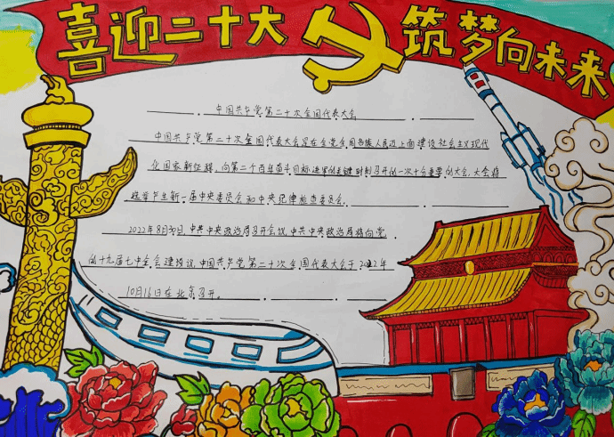 为热烈庆祝党的二十大胜利召开,讴歌党的光辉历程和伟大成就,传承和弘扬伟大建党精神,Jobs青年社区特此举办了以“心系祖国 手绘山河”为主题的手抄报作品展评活动。社区的青年学生们以笔抒情、以画传情,歌颂祖国、歌颂党、歌颂人民、歌颂新时代美好生活,在全社区广大青年心中厚植爱党、爱国的情怀,进一步加强青年人思想道德建设,抒发了Jobs青年社区师生队伍奋进新征程、建功新时代的壮志豪情。
