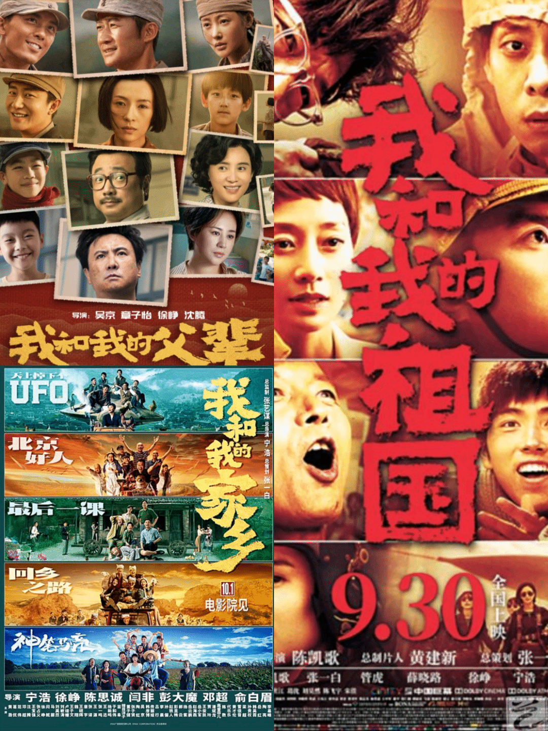 《我和我的父辈》、《我和我的祖国》和《我和我的家乡》也是国庆系列电影的三部作品,分别描述了革命、建设、改革开放和新时代四个历史时期中,先烈们不忘初心、砥砺奋斗的艰辛历程。