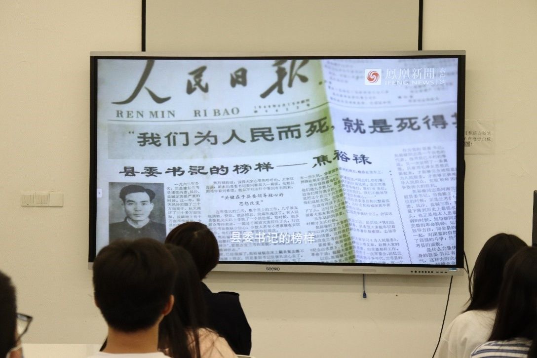 活动伊始,大家一起观看了焦裕禄诞辰百年微视频《声音》,全篇以“声音”作为贯穿始终的主线,将党的声音、焦裕禄精神传播者及聆听者的声音融会贯通,由引子、结尾及三个子篇章《声音·榜样》、《声音·回响》、《声音·传播》共同构成,分别承载不同的表述功能。画面以大气、唯美、朴实为主基调,通篇气韵相连,大气磅礴,生动展现了焦裕禄干部学院作为焦裕禄精神的传播者,肩负着传承红色基因、铸魂育人的政治责任,致力于培养更多焦裕禄式的好党员好干部,努力将焦裕禄精神种子撒播到大江南北,奏响奋进强音、担当时代使命,以实际行动迎接党的二十大胜利召开。