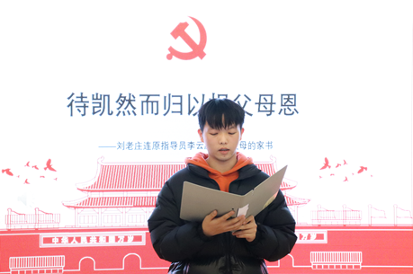 张鑫同学朗诵的是《我在死前一分钟都要为无产阶级工作》,这是抗日烈士金方昌同志于1940年12月2日在狱中致胞兄金永昌、金默生所写的一封家书。金方昌同志在敌人的监牢里遭受了非人的折磨,自知来日无多,于是给两位哥哥写了这封家书,12月3日金方昌同志牺牲,年仅20岁。他在信中告诉哥哥自己被捕的经过,以及虽遭酷刑但没有屈服,仍坚守党的秘密和信仰的情况,并且恳请哥哥能够继续进行无产阶级的革命事业,坚持到革命胜利的那一天,同时也要把弟弟、侄子们培养成无产阶级的革命战士。