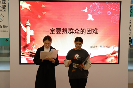 图五:肖羽、王理玉、李文静同学正在朗诵