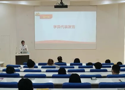 最后,本期党课培训班学员代表学生第四支部陈宋同学发言。她表示新冠肺炎疫情让大家共同经历了不同寻常的时期,在这个特殊的时期参加此次培训倍感光荣,她代表全体学员承诺:一要按时上课,在课上仔细聆听教师的讲解;二要严格要求自己,遵守纪律;三要主动完善自己,把自己锻炼成符合党和人民期望的合格的社会主义建设者和接班人。