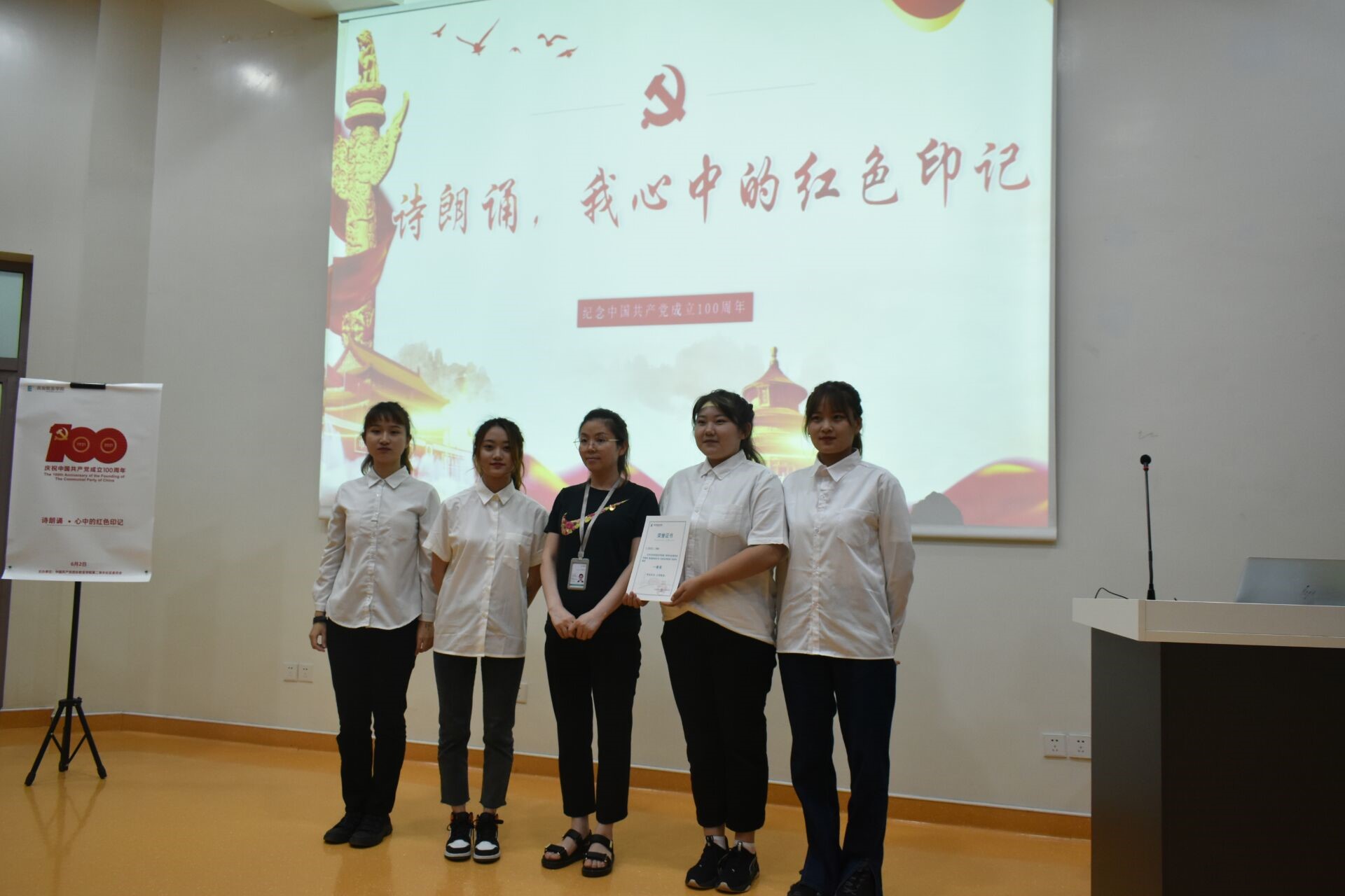 为庆祝中国共产党成立一百周年及推进党史学习教育走深走实,近日,第二青年社区分党委在西C阶梯教室开展了以“心中的红色印记”为主题的诗朗诵比赛。本次比赛由七组选手组成,分党委9个支部书记参与评分,125名积极分子现场观看。
