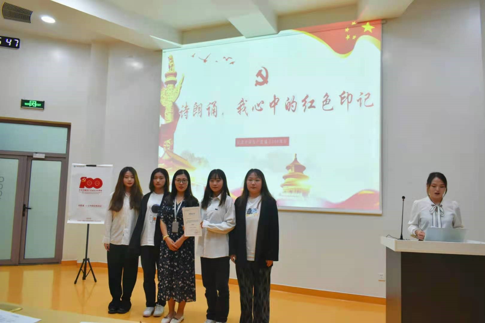 第一组选手获得了三等奖,诗歌朗诵《有一种壮阔,气壮山河》,“忆往昔峥嵘岁月,九十载沧海桑田,今昔,神州大地换新颜”,在她们铿锵有力的朗诵中,大家感受着祖国百年来气壮山河的壮阔,党的旗帜高高飘扬,用鲜血写下了华夏民族的不屈、用臂膀撑起了中华民族的自立自强。