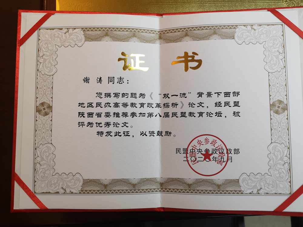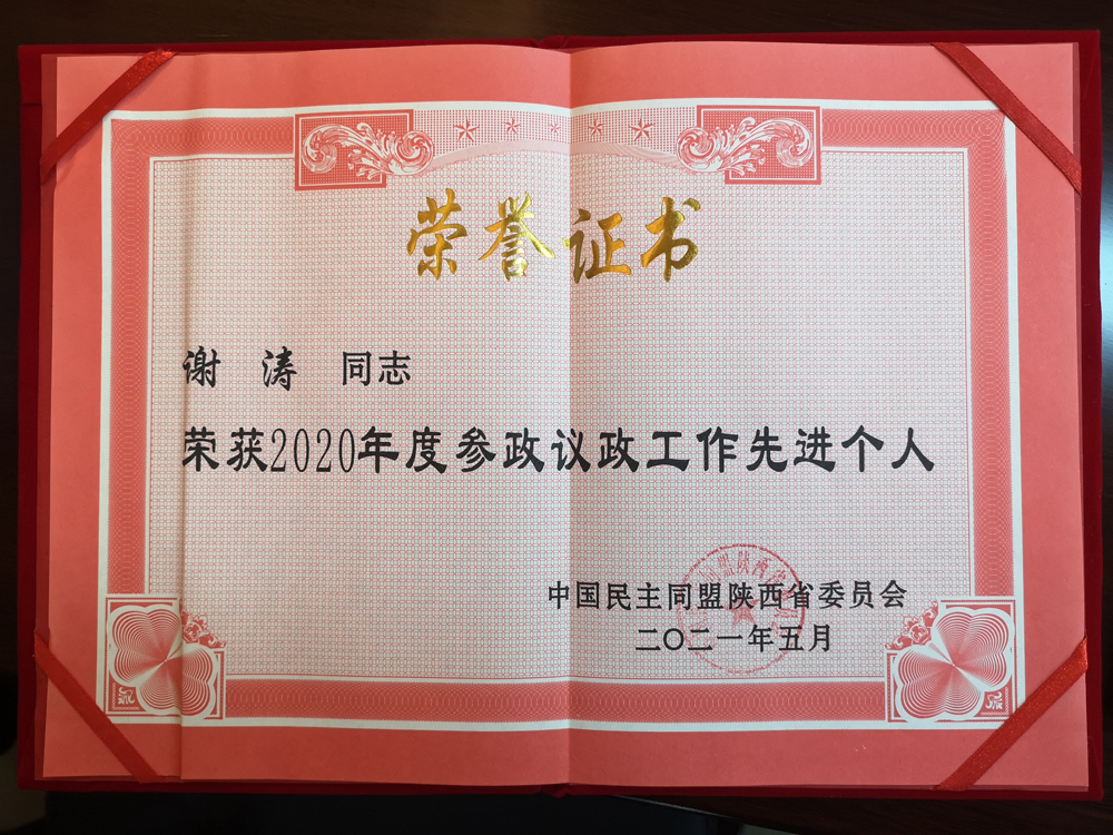 会议颁发了“民盟中央2020年度社情民意信息工作先进个人”奖项,对2020年民盟陕西省委获得参政议政工作先进的专委会、基层组织及先进个人进行了表彰。民盟beat365正版唯一官网必一总支在陕西省委2020年参政议政工作综合量化考核中,获得“民盟陕西省委2020年度参政议政先进集体”称号;谢涛主委及总支盟员李笃峰获得“陕西省委2020年度参政议政先进个人”奖项。
