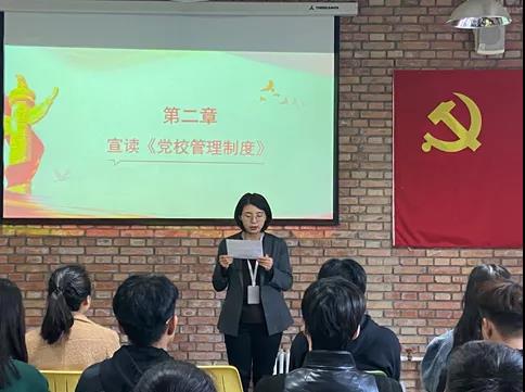 郭妍同志宣读了《第一青年社区分党委党校管理制度》,介绍了培训方式、培训纪律,以及考核办法等。
