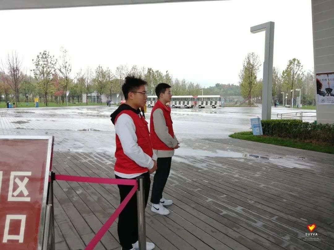 第一次面对完全陌生的人,在长安公园里,说实话,很紧张,因为我自己都不知道许多地方怎么走,但是随着环境的熟悉,面对游客的询问我也越来越回答的流利。还有在码头上为那些小弟弟,小妹妹穿完救生衣后那一句句“谢谢哥哥”真的很暖心,虽然一直站在那里很辛苦,久了后腿会疼,但是真的面对那些有礼貌的孩子的回话,我觉得我的付出受到了回报,至少我的行动得到了别人的认可。还有在那里的工作人员,他们也会对我们投以关怀,会问我们冷不冷,累不累,会让我们去休息。