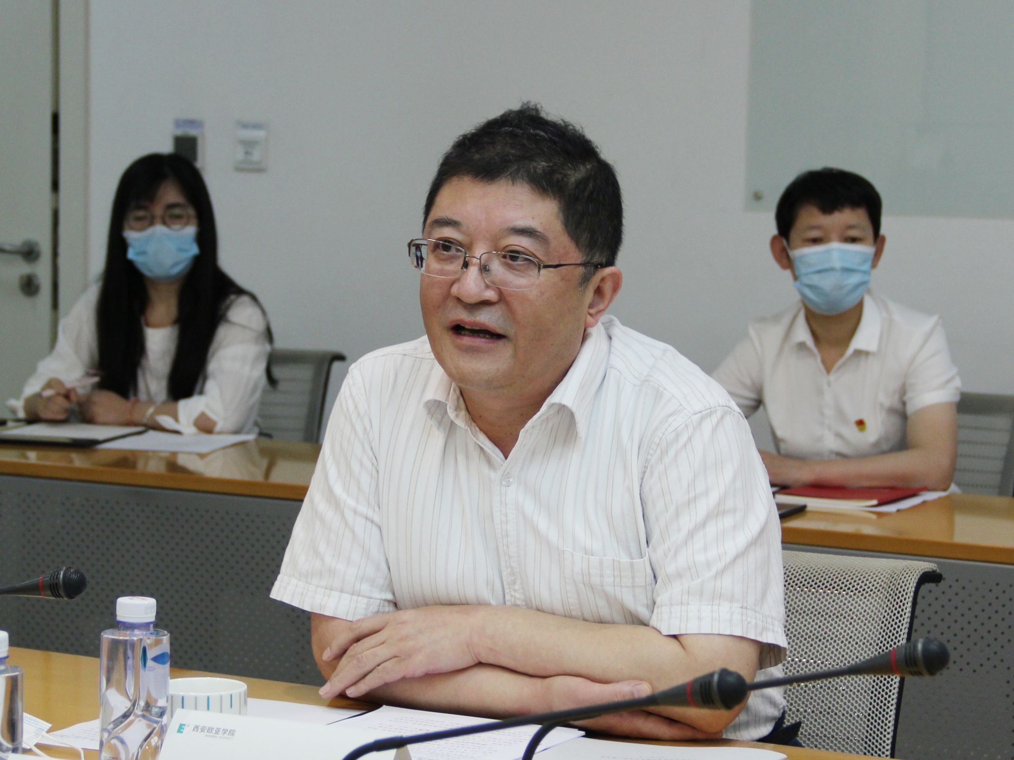 党委书记于孟晨介绍了学校党委基本概况,并从提高政治站位、强化责任担当、全面从严治党、推进改革发展四个方面汇报了学校新时代党建“双创”培育创建取得的积极成效。他说,学校党委坚持以政治建设为统领,以质量攻坚为动力,以提升组织力为重点,以推动事业发展为落脚点,主动承担起新时代党建“双创”工作的主体责任,着力发挥政治引领、团结凝聚师生、促进学校中心工作等方面的主体作用,以高质量党建推进学校高质量发展所取得的积极成效,为推进学校实现第二个十年发展战略提供坚强的政治保证、思想保证、组织保证。他表示,目前,学校正在深入学习贯彻习近平总书记来陕考察重要讲话精神,全力以赴推进学校第二个十年发展战略。下一步,学校党委将围绕学校“国际化、应用型、课程体系重构与质量保障、学生发展、组织变革与战略人力资源、数字化转型”2020年度六大工作重点,全面推进质量内涵建设,持续推进新时代党建“双创”工作落细落小落实,严格对标看齐,勇于改革创新,努力争创先进,为推进我省教育事业追赶超越做出欧亚学院担当、贡献欧亚学院力量。