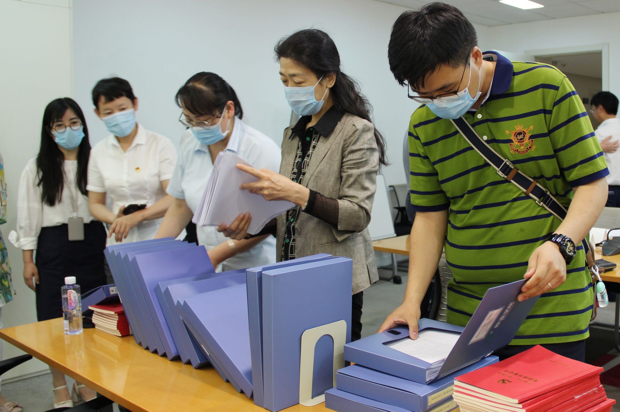 评估验收专家组实地查看通识教育学院第一党支部“全省党建工作样板支部”培育创建支撑材料