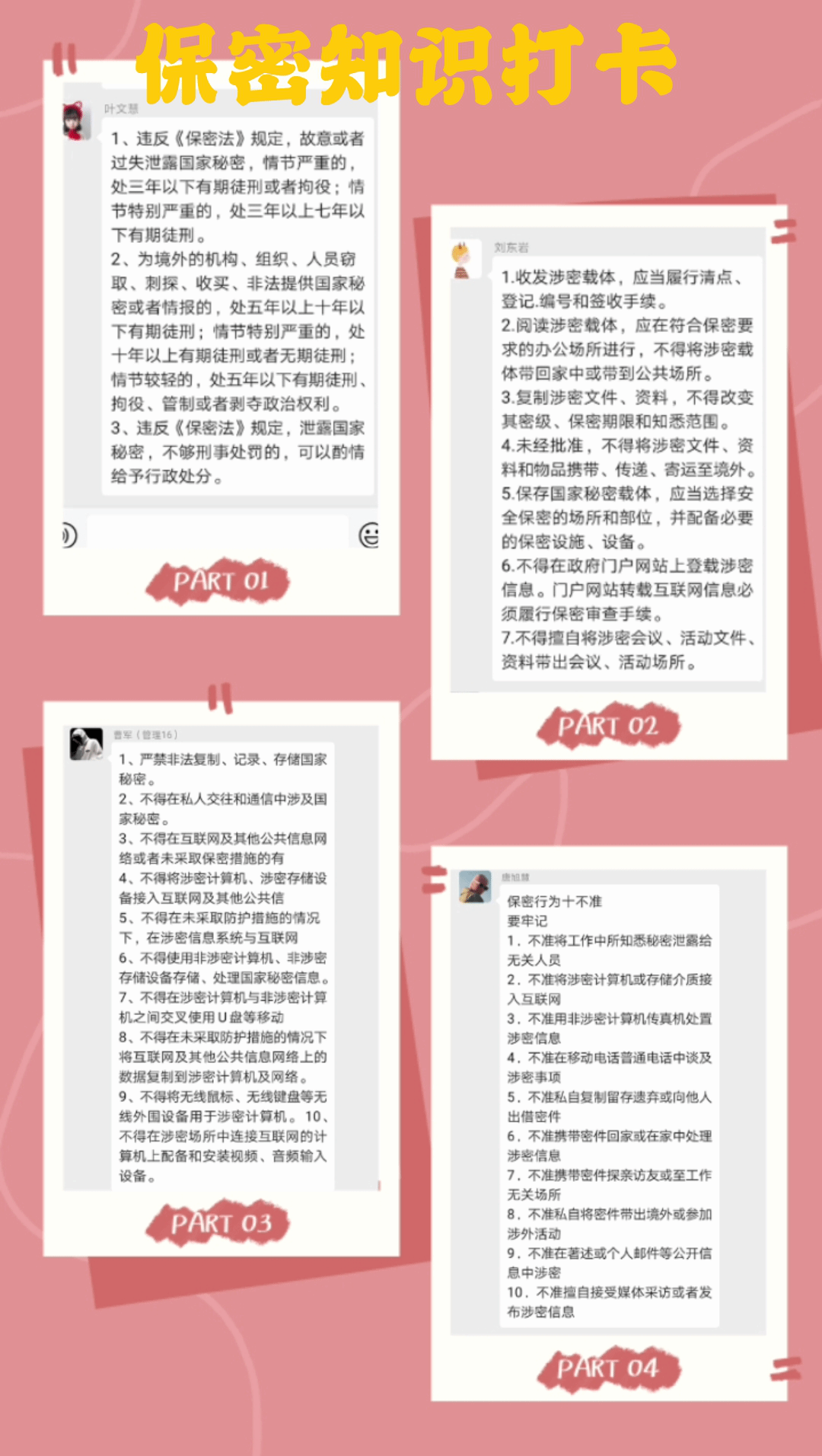 2020年5月是全国第32个保密宣传月,为提高广大师生的保密意识,第一青年社区分党委以支部为单位,以线上线下活动为载体,开展多种形式的保密常识学习及法律法规宣传教育活动。